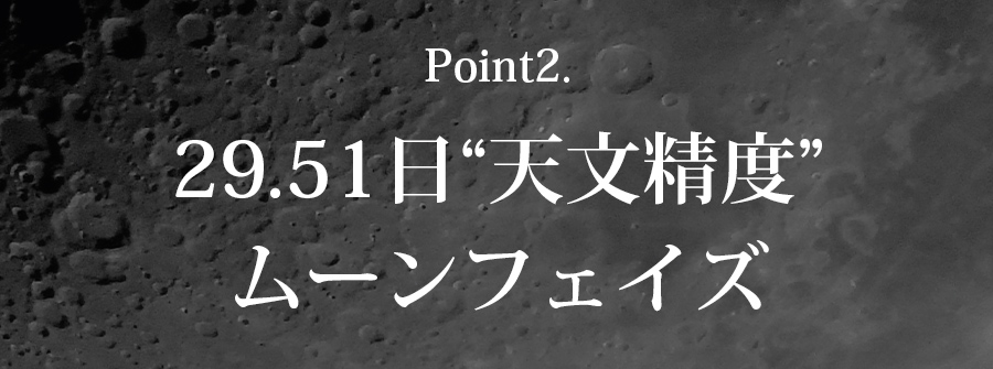 昼夜問わず“月が動く”美しさを楽しめる、観賞性を高めたムーンフェイズです。
