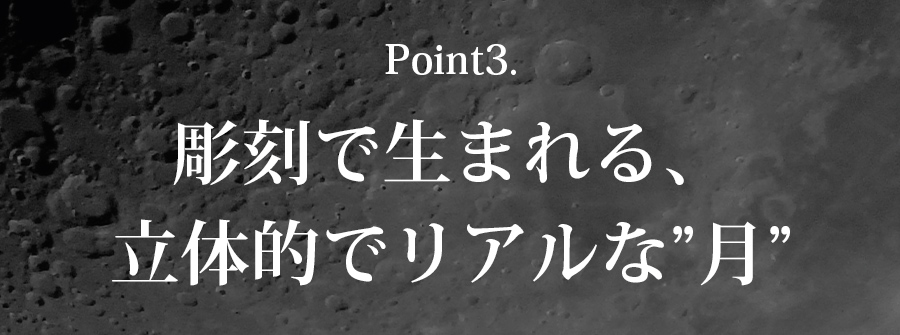 ムーンフェイズにおいて主役となる「月」の表現に長年こだわり続け、より美しく、より本物らしく魅せるための改良を重ねてきました。