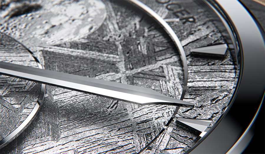 隕石ダイヤル×ムーンフェイズの神秘的な表情に、繊細な光の輪が加わることで、ビジネスにもフォーマルにも映える“格上げモデル” としてお楽しみいただけます。