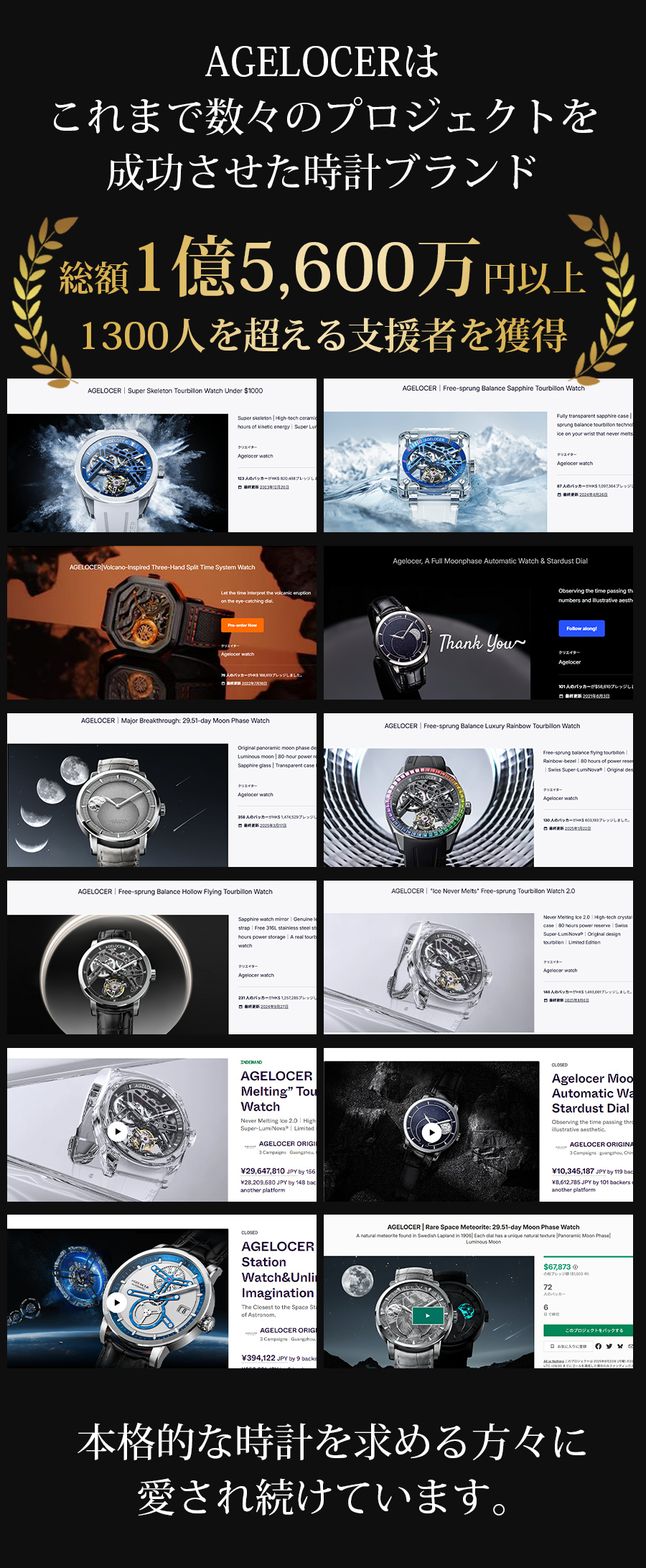AGELOCERはこれまでに 20以上の国際デザイン賞を受賞してきました。さらに100件以上の特許を取得し、「フリースプラング・バランス トゥールビヨン」も開発しました。
