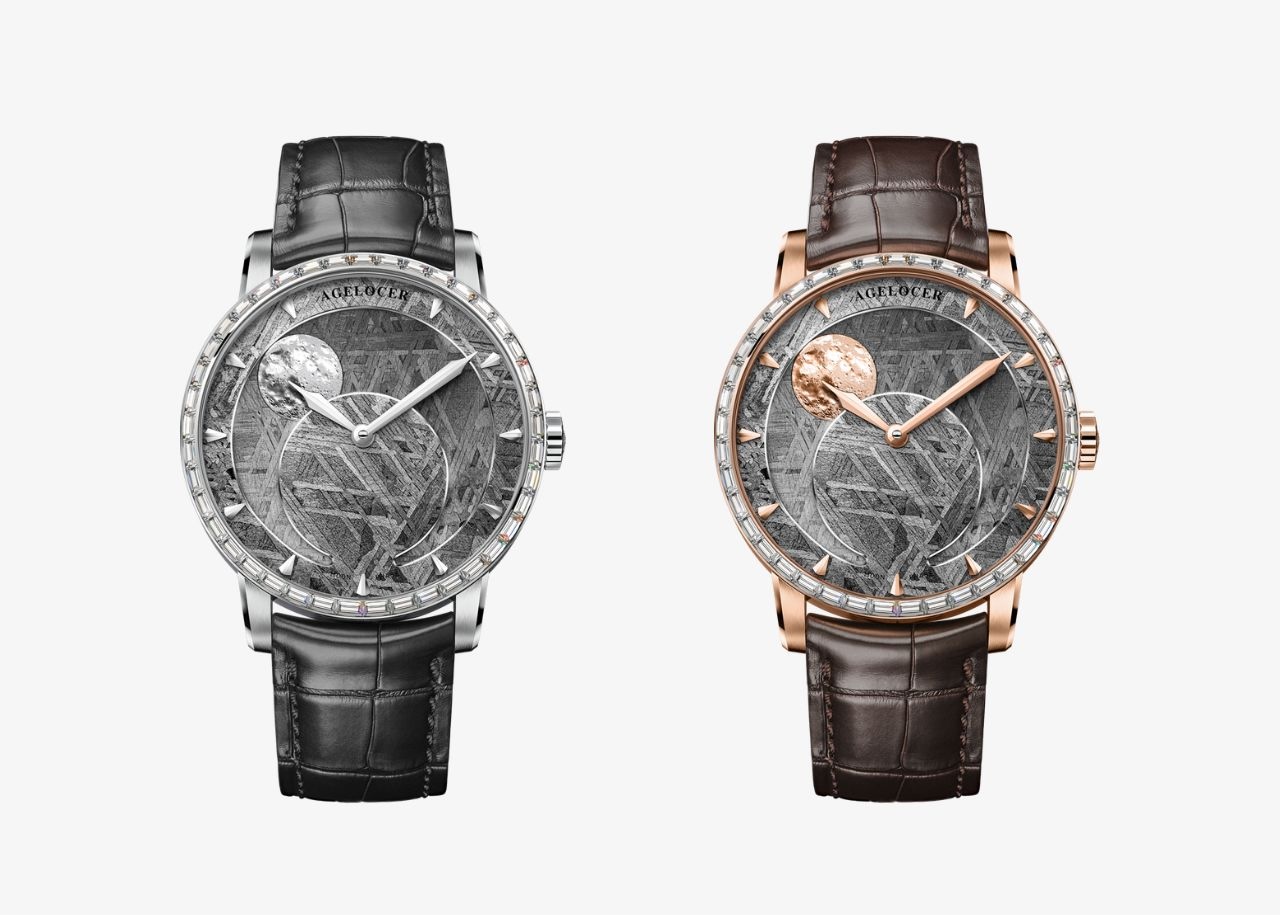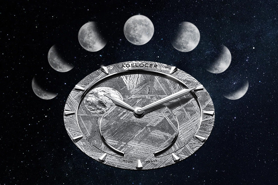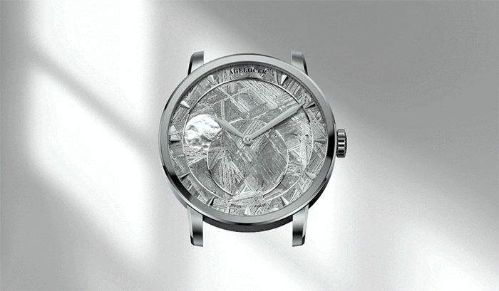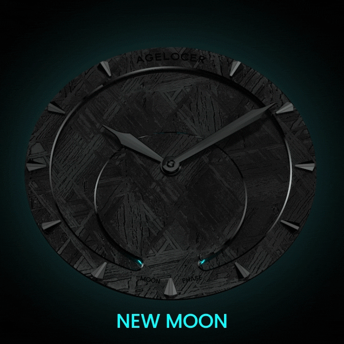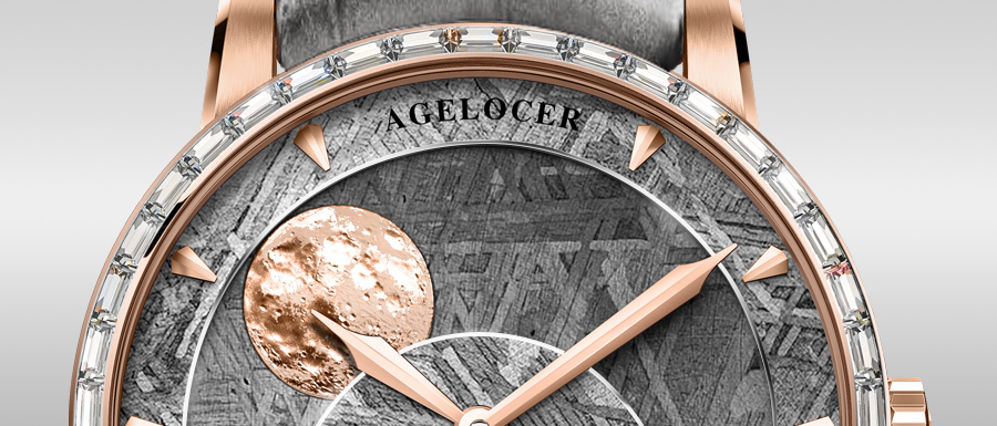 従来のムーンフェイズは、文字盤の一部に設けられた小さな窓から表示するのが一般的でしたが、AGELOCERは、直径28.5mmの大型パノラマウィンドウを新たに設計。
