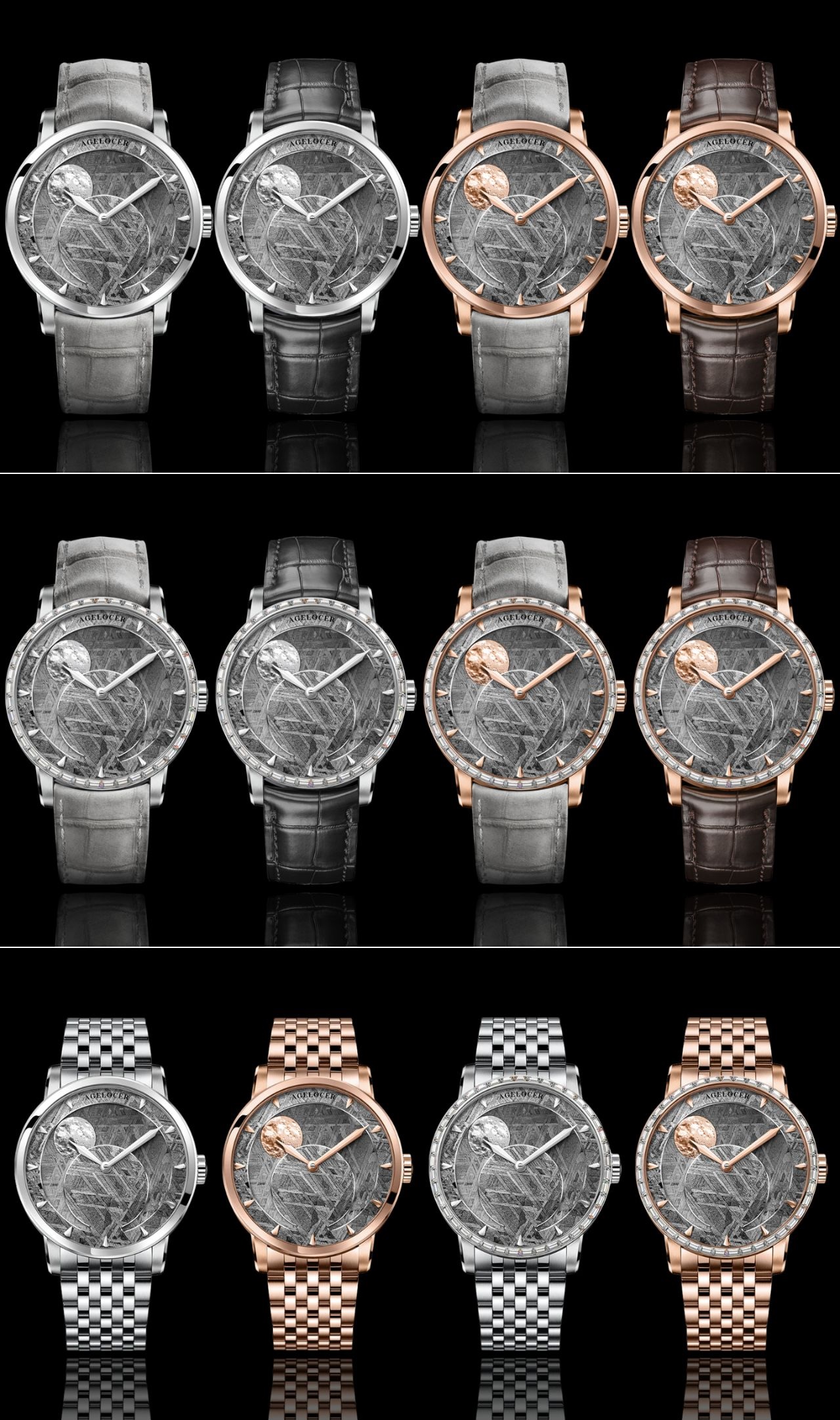 星空や月の満ち欠けをモチーフにしたデザイン。3D金細工で再現された月面の凹凸は、腕元で時の移ろいを詩的に描き出します。